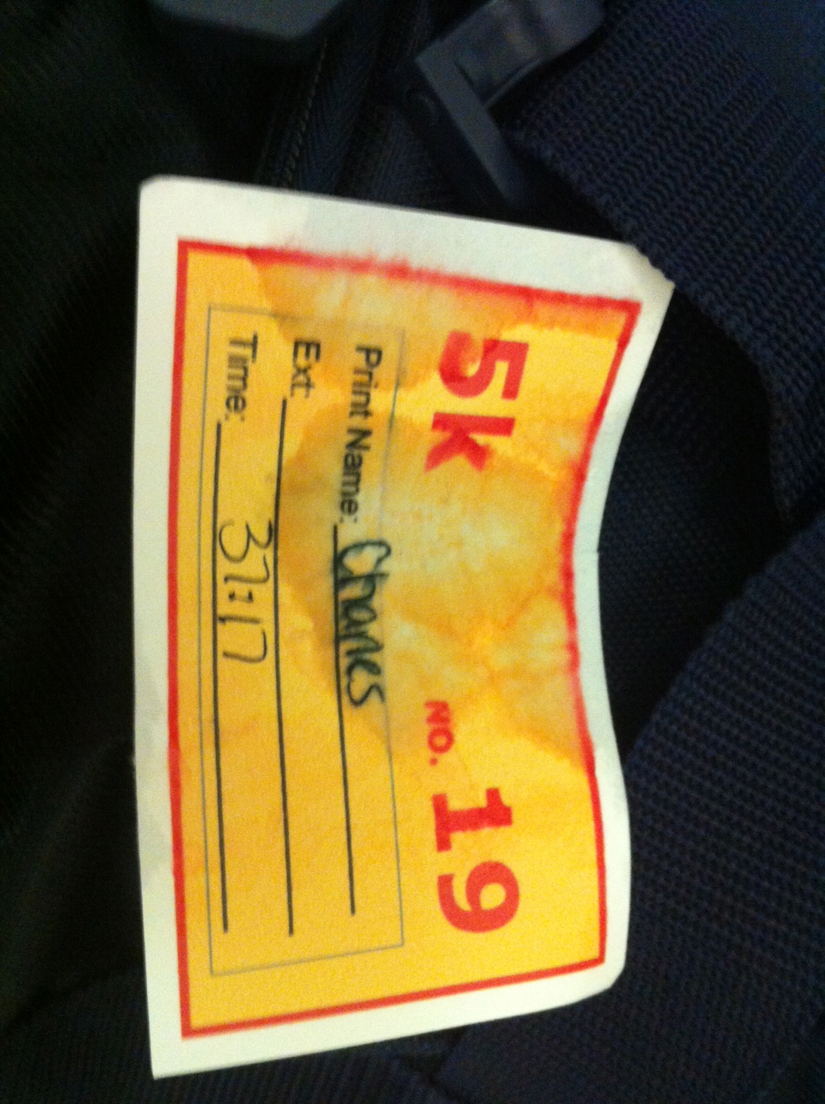 Charles headed off to work today with a 5k on the agenda.  I was so excited to receive this photo by text just before lunch: