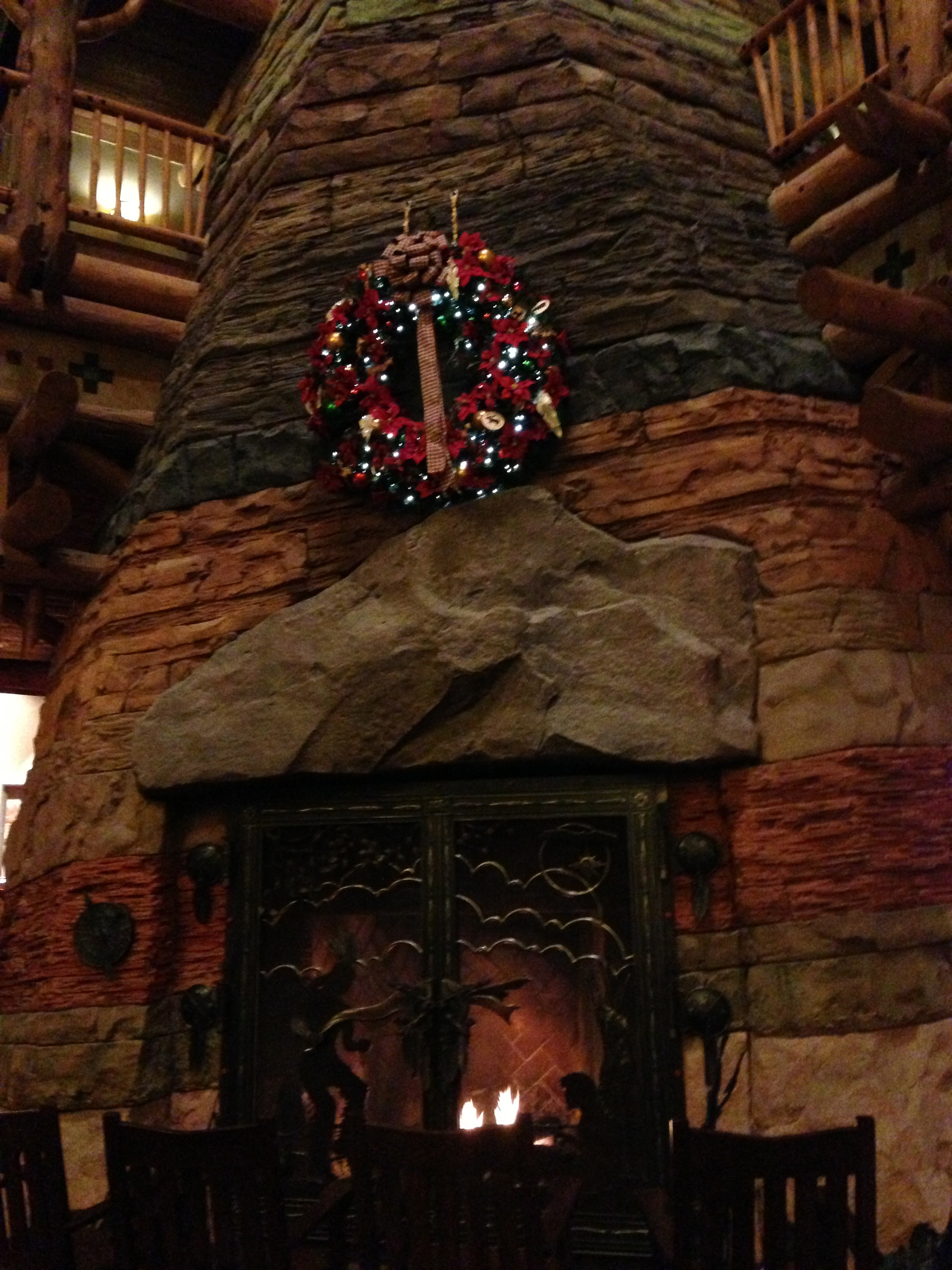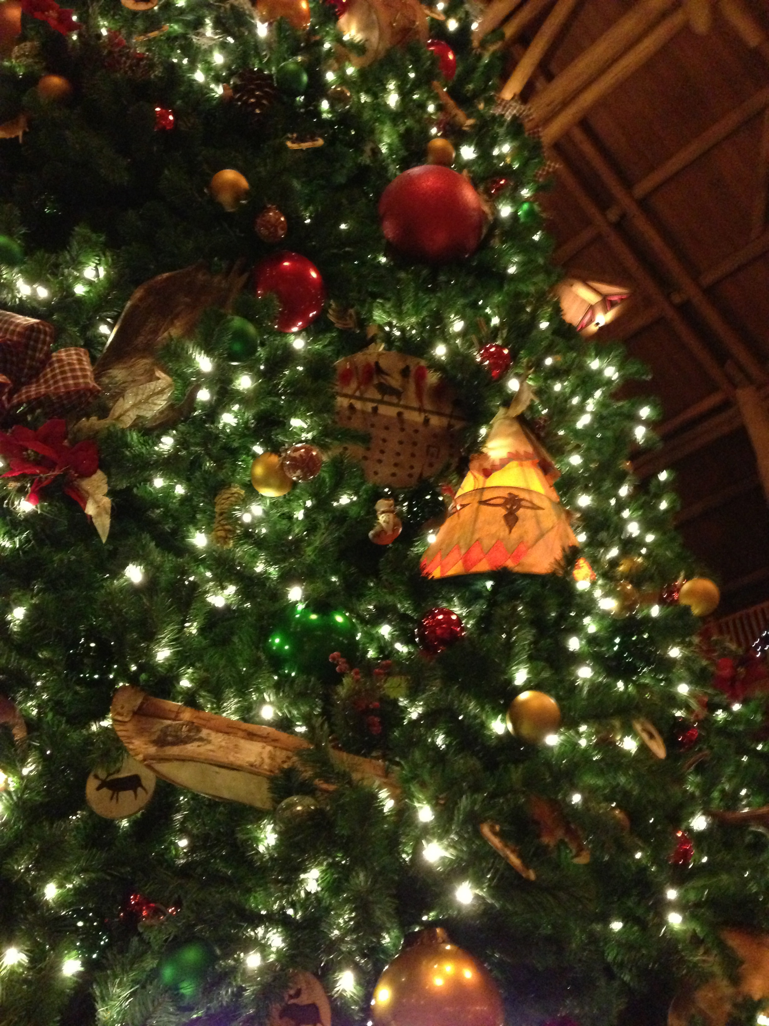 With this, we concluded our meal and headed out to the resort’s lobby to admire the beautiful Christmas decorations. I absolutely love how Walt Disney World transforms literally overnight into a winter wonderland. There is something particularly homey about the decorations at the Wilderness Lodge. I think this is the first year that I have actually visited this resort during the holiday time period but the trees, wreaths, and other trimmings were adorned with plaid bows, teepees, and other wilderness-themed decorations.