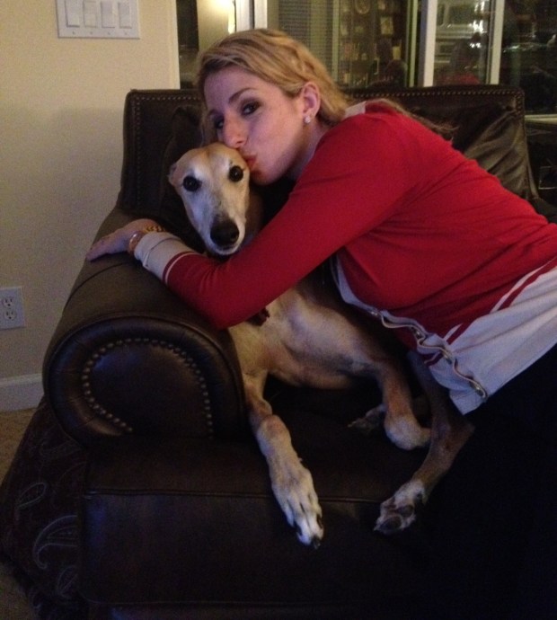 We had all the typical foods – turkey, stuffing, mashed potatoes, green been casserole etc. (almost all cooked by my Mother all on her own) – and it was all delicious. After a dessert of store-bought chocolate cake and pumpkin pie, it was definitely cuddle time with the pups: