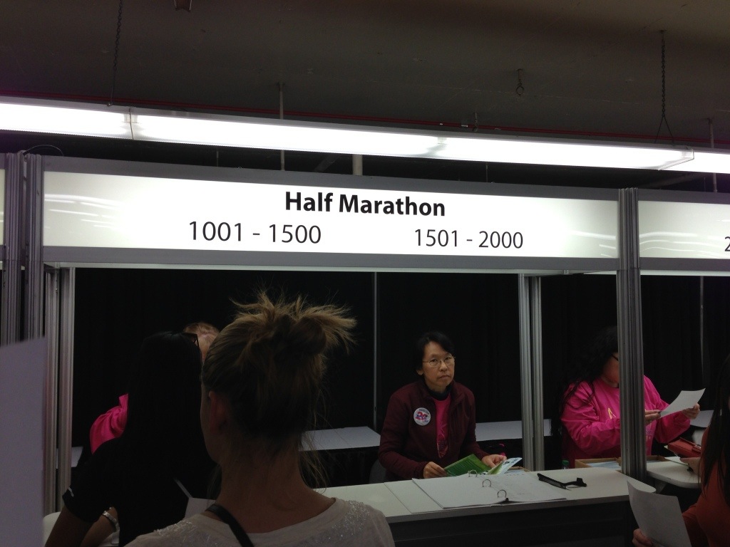 This process was fairly simple as usual and required ID verification, waiver turn-in, and a quick sign off. I walked away with my pretty green bib in hand, ready to head upstairs into the expo to grab my goody bag and explore the always-exciting myriad of vendors.