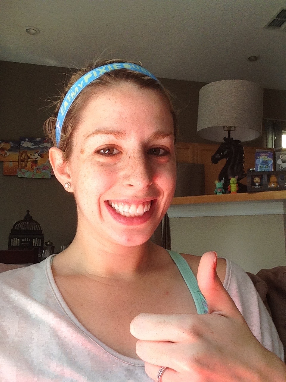 I indulged my shopping urges in the Disney-branded merchandise section this time. Two things caught my attention. I picked up the beautiful white zip up jacket with a Tink Half 2013 logo that you see in the photo above. What really got me was the Disneyland Resort logo down the sleeve. I love the Disneyland font and find it difficult to resist making the purchase when an item features it. I also was excited to find that, for the first time, Disney offered a custom event Sweaty Band. They offered two different designs but the blue “Eat My Pixie Dust” band stole my heart. It was an easy decision to incorporate this into my race-day look.