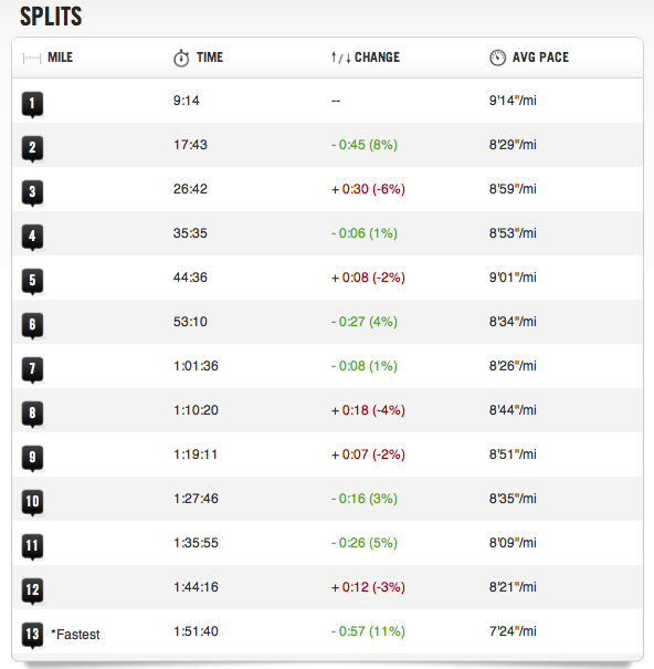 Here are the details on my split times:
