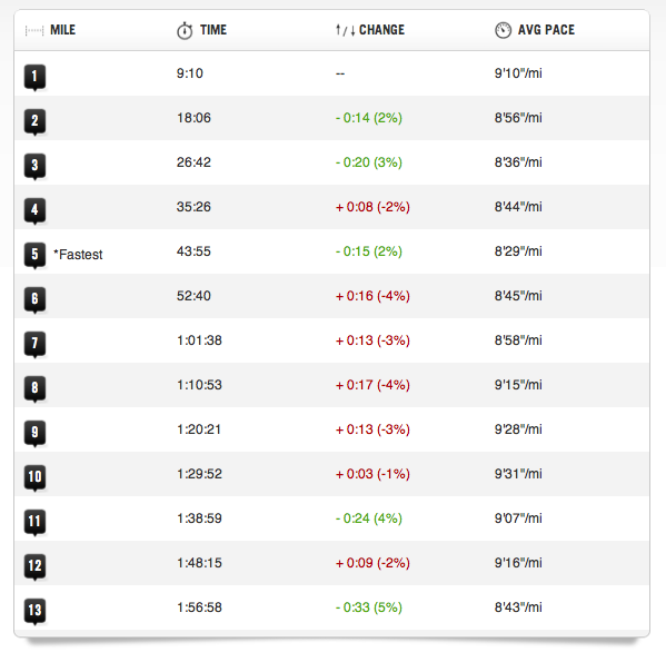 Miles 8 & 9 – 9:15 & 9:28 average pace.  This was where I really started to drag.  In hindsight, I though I was going even slower (like closer to 10 minute pace) based on how I felt.  I tried to just stay steady and enjoy the race as much as possible.  It was a hard effort and took a ton of mental strength but I was still staying with a pace that I could handle physically.  I ate my shot blocks just after the 9 mile marker.
