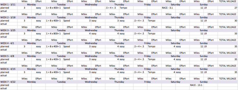 With 7 training weeks left before the Nike Women's Half Marathon in D.C., I have just enough time to really up my training effort and see what I can do. For my last few races, I have sort of "coasted" through training in that I have continued to do my usual thing and have enjoyed … Continue reading Let’s Do This! Unveiling My New Training Plan