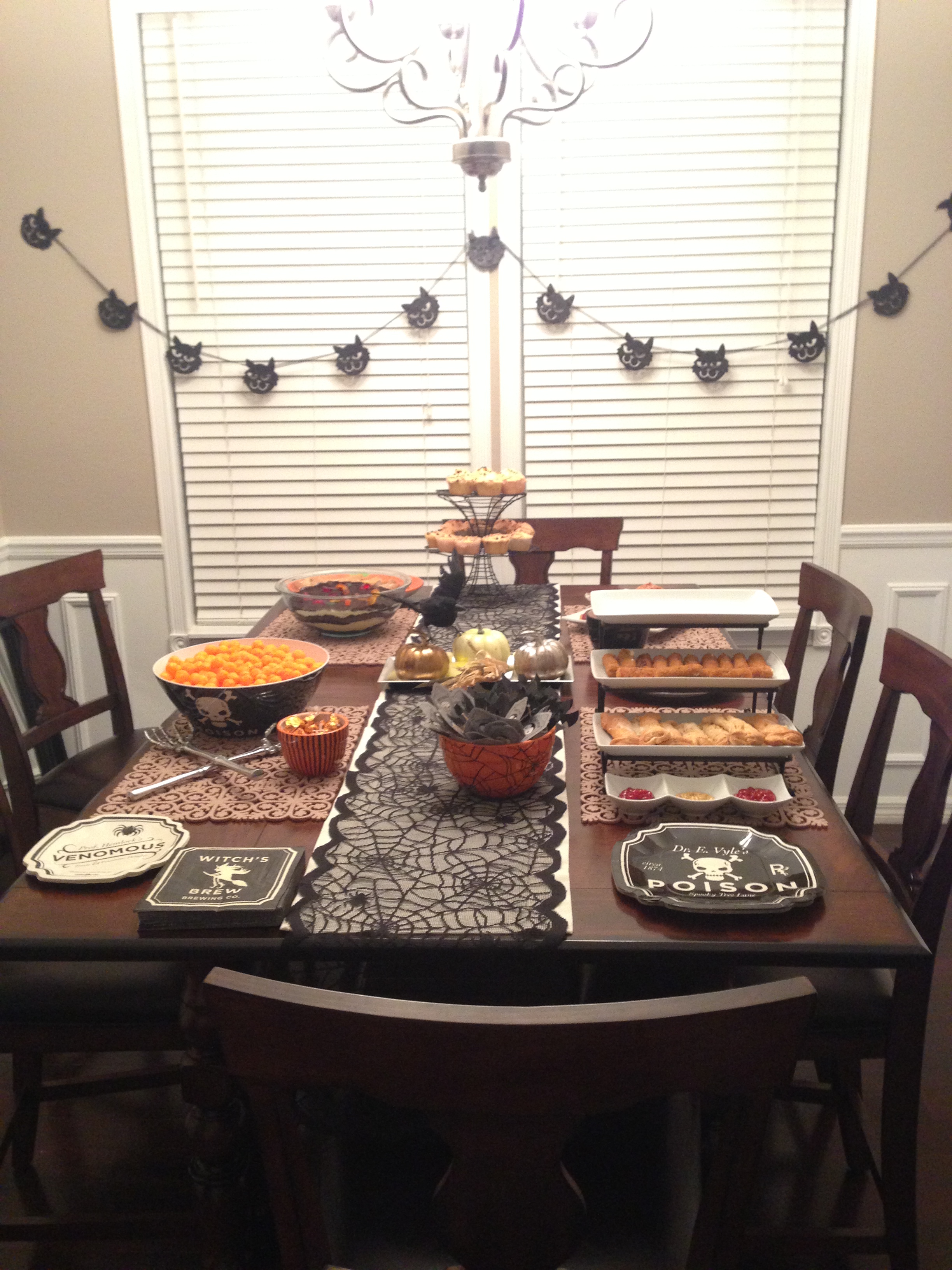 So this week marks 7 months of wife-hood for me and, although I think I am a pretty darn good wife all-in-all, where I falter is most definitely on the domestic front.  If I had all the time in the world, I have no doubt that I have (or could at the very least) develop the skills.  For example, I think I did quite a nice job pulling together a lovely spread for a Halloween party we threw last year if I do say so myself: