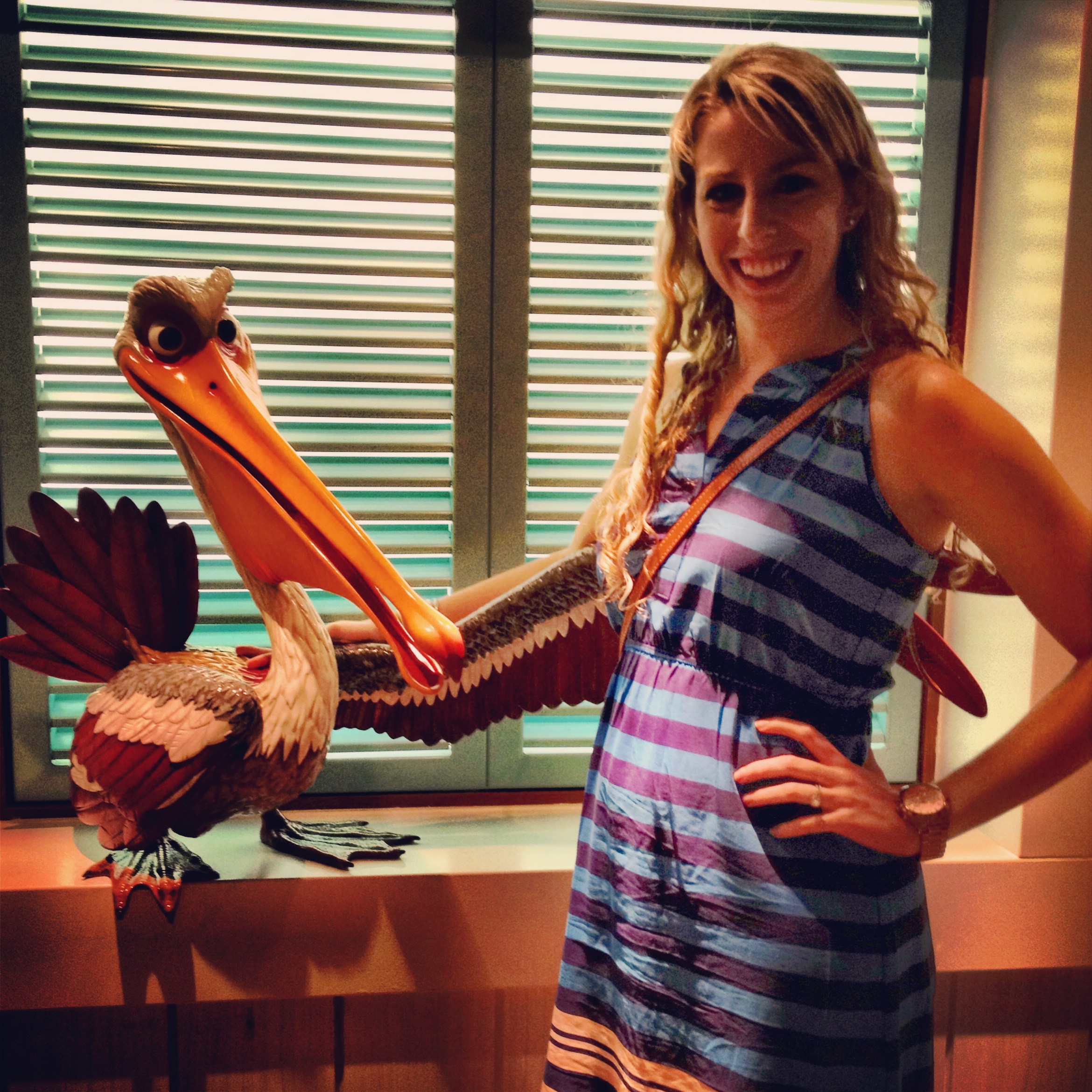 Once we stepped onto the beautiful Disney Dream, it was quickly off to our room so we could grab lunch before it was done for the day. Sitting down with my plate from that first lunch buffet is the real moment of arrival for me…and what a plate it was. I stopped by my good friend Nigel the Pelican on the way out and we headed to the room for a few minutes to settle in.