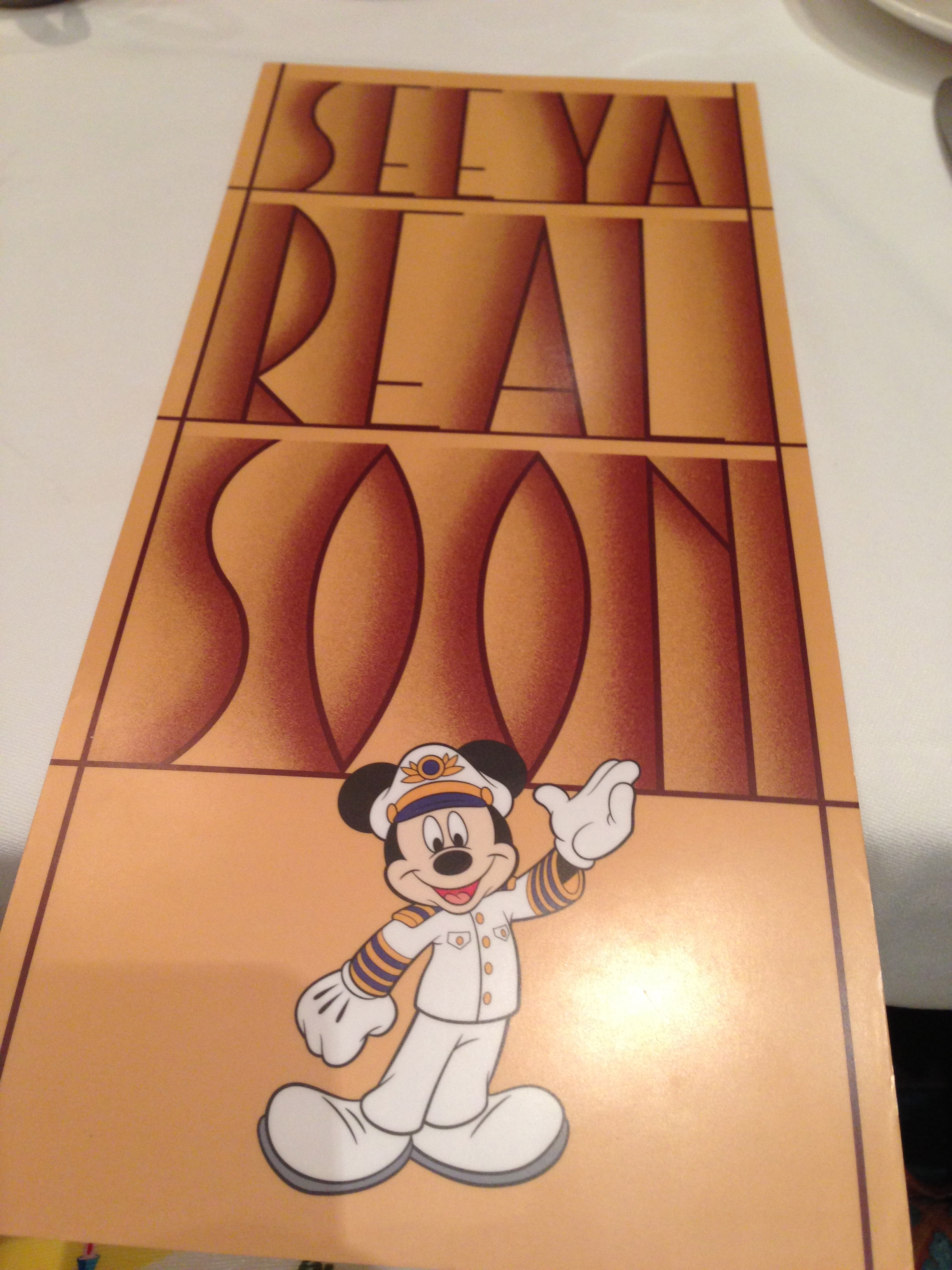 Our last dinner was in the elegant Royal Palace. I was definitely not ready for the last dinner to be here already. When we finished dinner, we enjoyed a little music while we waited for the start of “See Ya Real Soon,” a great little gathering where some favorite characters come out to take pictures. We couldn’t resist a quick picture with my favorite, Minnie Mouse!