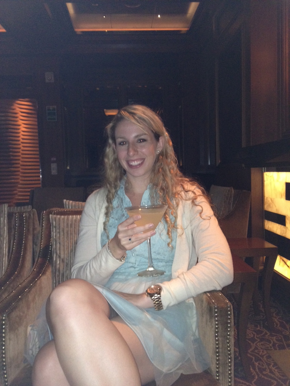 and then our last to-do…grabbing a drink at the Skyline Lounge. This beautiful bar features an ever-changing view of skylines from around the globe. The music and other atmospheric elements change with the skyline and it is one of the most beautiful spots on the ship. The “Oh La La” is my only must-have drink on the whole ship and tastes pretty close to a Mojito but is served in a fancy-schmancy martini glass.