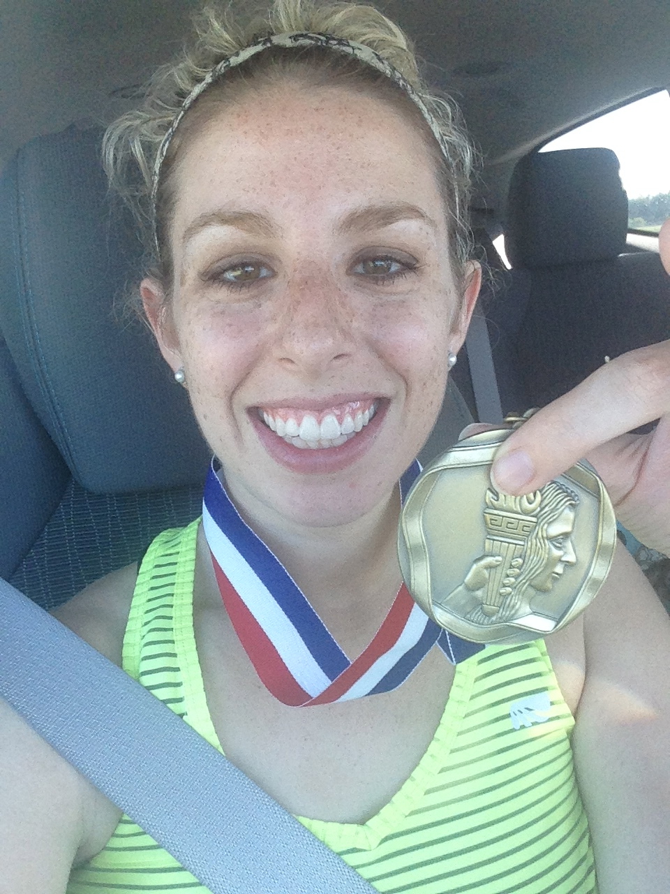And a post-race “selfie” with my age group award medal: