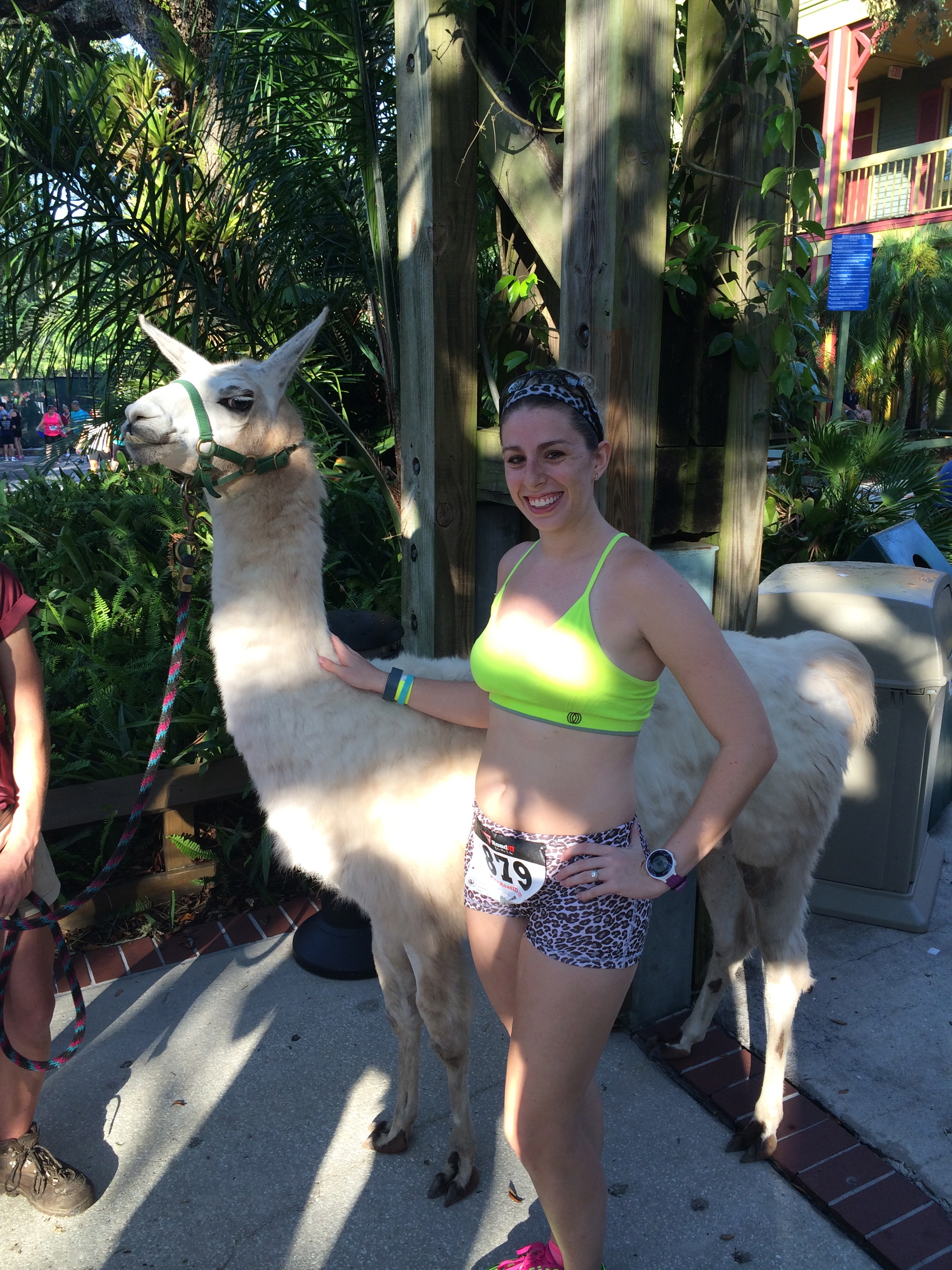 I also snuck in one quick 5k prior to this trip. Each year, the Lowry Park Zoo in Tampa hosts the Zoo Run Run. I participated in this race once before when I was new to the sport and was eager to participate again. Not only does this race course weave through the zoo, but admission to the zoo is also included in your race entry. That made this a no brainer for me, even meriting the hour long drive to get there. Despite very limited speed work (a couple of tempo runs and no track workouts), I ran a fairly strong time of 23:09 and placed 2nd in the 25-29 AG. Bonus? Post race llama photo FTW!
